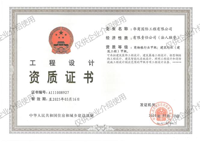 Founded in 1954, Huashang International Engineering Co., Ltd. (formerly known as the Internal Trade Engineering Design & Research Institute) is now affiliated with COFCO Technology & Industry Co., Ltd,(stock code: 301058. SZ) and is the core backbone enterprise of the national engineering construction industry.