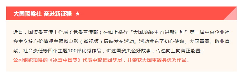 《冰雪中國(guó)夢(mèng)》獲評(píng)第三屆中央企業(yè)社會(huì)主義核心價(jià)值觀主題微電影優(yōu)秀作品